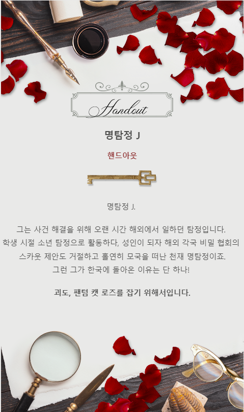 명탐정 J:아, 이런 실례. 갑작스러운 방문에 놀라셨나요?